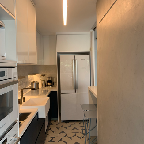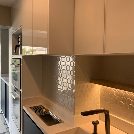 Integrar ou não a cozinha é uma dúvida comum entre nossos clientes. No AP Saúde, criamos painéis deslizantes que se embutem na marcenaria. Dessa forma, é possível integrar ou fechar completamente a cozinha, de acordo com a necessidade do momento. Incrível, não é?